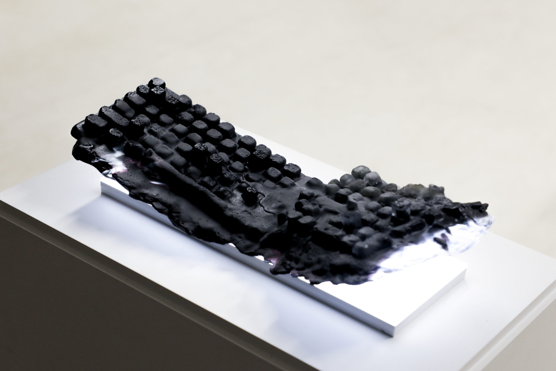 The interaction of technology in our modern lives is transformative for our connections between individuals. The fragility and permanence of glass reflect the transient and daily perfunctory text in our digital dialogue. The cultural implications of Cantonese phrase 'HEA(迆)' are shaping the way we communicate. I would like to provoke a reflection in viewers regarding their responses in the digital world.